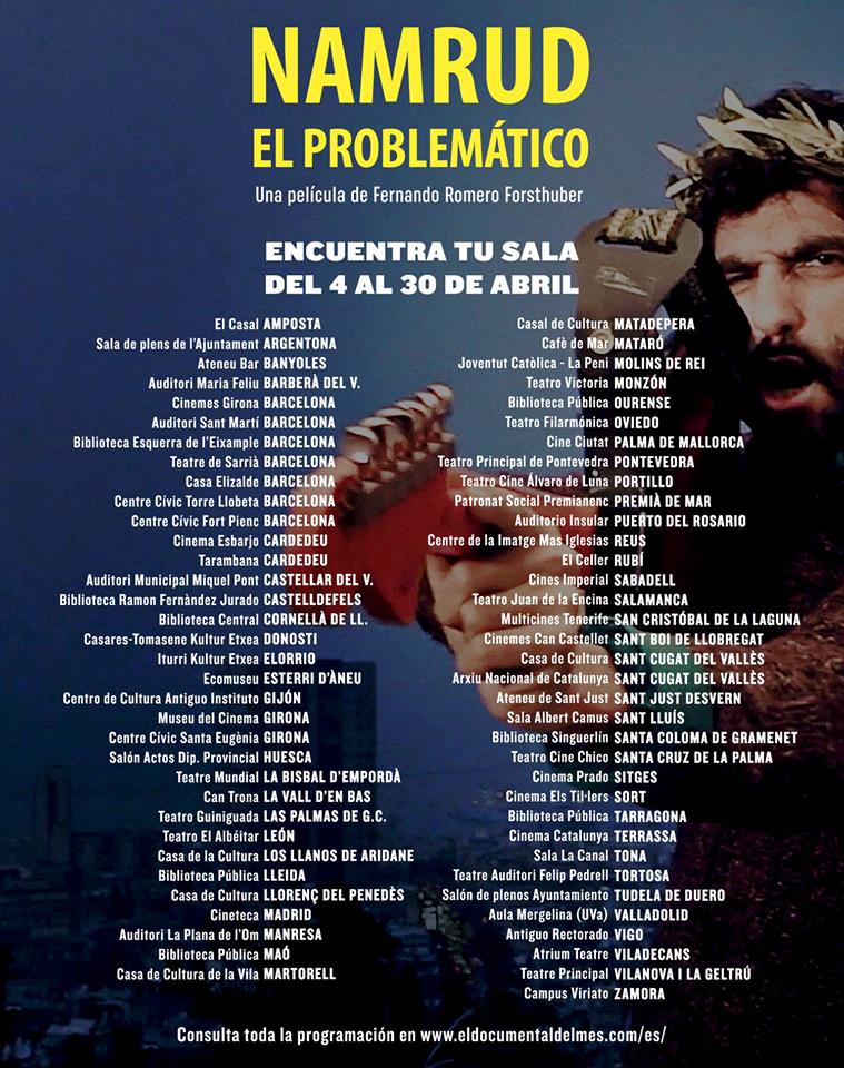 DOK Leipzig 2017, DE | Haifa Independent FF 2018, IL | Crossing Europe FF 2018, AT | Ethnocineca FF 2018, AT | CinéDOC-Tbilisi FF 2018, GE | DocsBarcelona FF 2018, ES | DOK.fest Munich 2018, DE | Festival Internacional de Cine Político 2018, AR | Festival Internacional de Cine por los Derechos Humanos 2018, CO | Fünf Seen Filmfestival 2018, DE | NAFA Int. Ethnographic Film Festival 2018, RO | WOMEX 2018, ES | International Festival of Mediterranean Documentary and Reportage 2018, FR | Festival DocsBarcelona Valparaíso 2018, CL | DokuBaku Int. Documentary FF 2018, AZ | Arab Film Festival 2018, DE | Cinemed Festival 2018, FR | DUHOK Int. FF 2018, IQ | Frontdoc FF 2018, IT | Marda Loop Justice FF 2019, CA